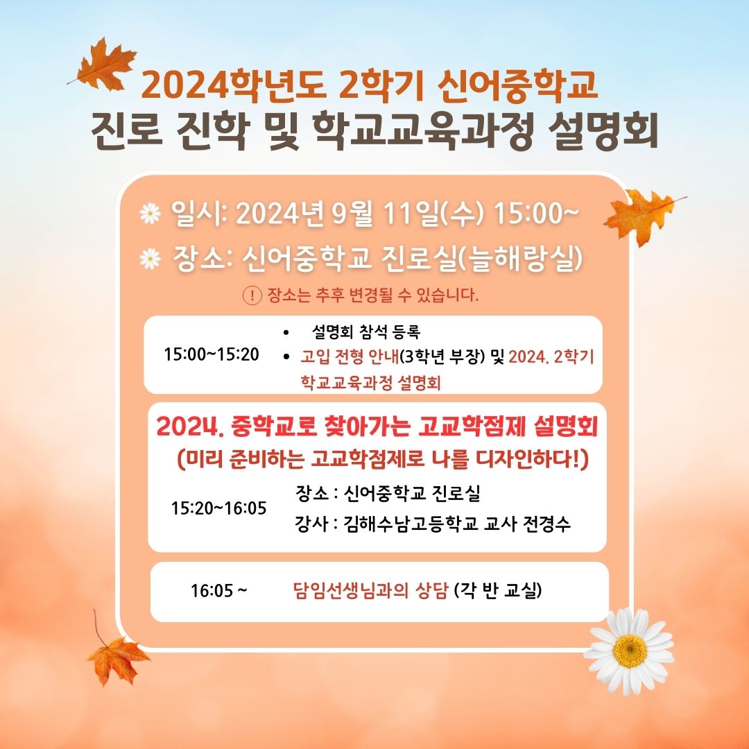 2024. 2학기 진로진학 및 학교 교육과정 설명회를 개최하오니 학부모님들의 많은 참여 바랍니다.